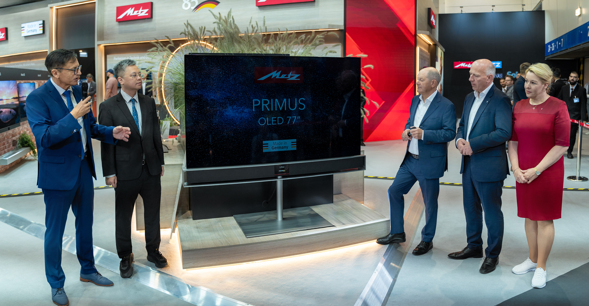 On the first day of IFA 2024, German Chancellor Olaf Scholz visited the METZ booth. He experienced METZ's innovative high-tech products and praised them highly. The product that particularly attracted the German Chancellor’s attention was METZ’s flagship product, the Primus OLED 77—a product combining top-notch picture quality, acoustic quality, and design. The Chancellor inquired about why the TV was named "Primus." “Because this TV is one of the best in terms of picture quality, acoustic quality, and design.”Explained Dr.Kotzbauer, CEO of METZ. The Chancellor’s visit highlighted METZ’s influence in the high-end market, fueled excitement about future technological developments, and boosted METZ’s confidence in exploring and expanding in the European market. METZ expresses sincere gratitude for the opportunity to share this historic moment with the media and consumers.